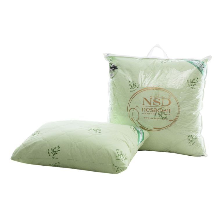 Подушка "Престиж- бамбук" 2-х камерная: имеет чехол из ткани глосс-сатин с оригинальным серебряным тиснением, плотностью 80 г/кв.м. простеганный с термоскрепленным бамбуковым волокном 100 г/кв.м, на молнии и внутренний блок с наполнителем искусственный лебяжий пух.